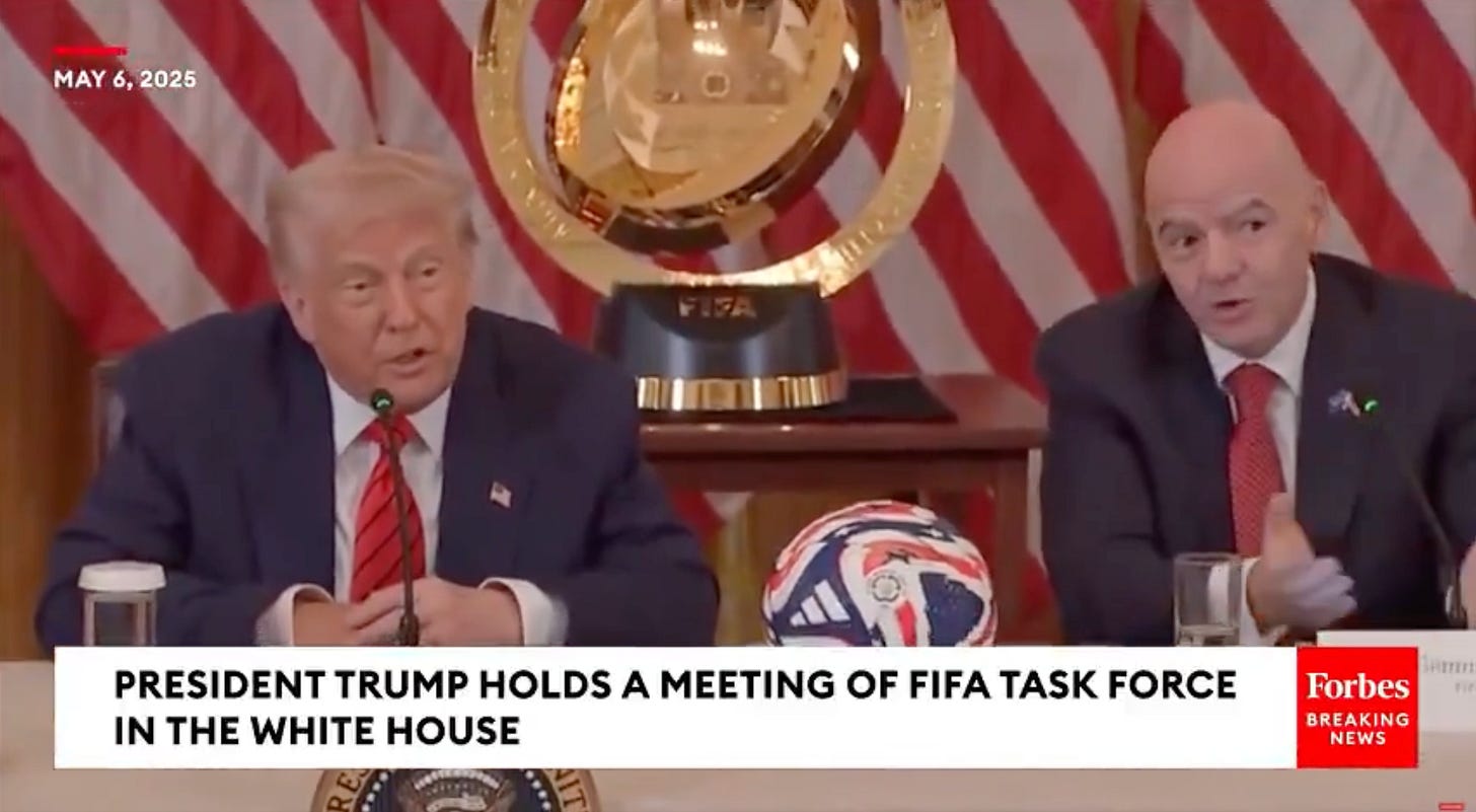 — Yo no lo sabía. ¿Es esto correcto? — Trump preguntó mirando hacia Infantino.