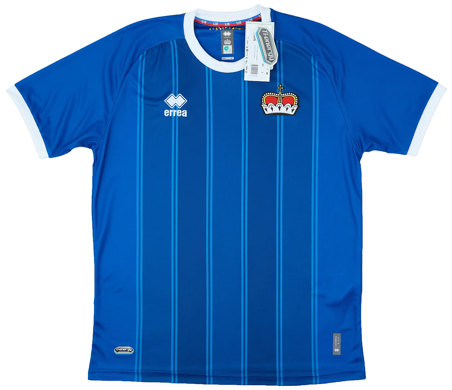 ¿Buscas la camiseta definitiva para amantes del fútbol remoto? Pues aquí tienes la de Liechtenstein, única selección que ha sido derrotada no una ni dos sino hasta tres veces por San Marino. Carece de liga propia, su estadio es minúsculo y sus clubes juegan en Suiza. Actualmente ocupa el puesto 205 de 211 en el ranking FIFA… y eso que una selección -Eritrea- ni siquiera compite.