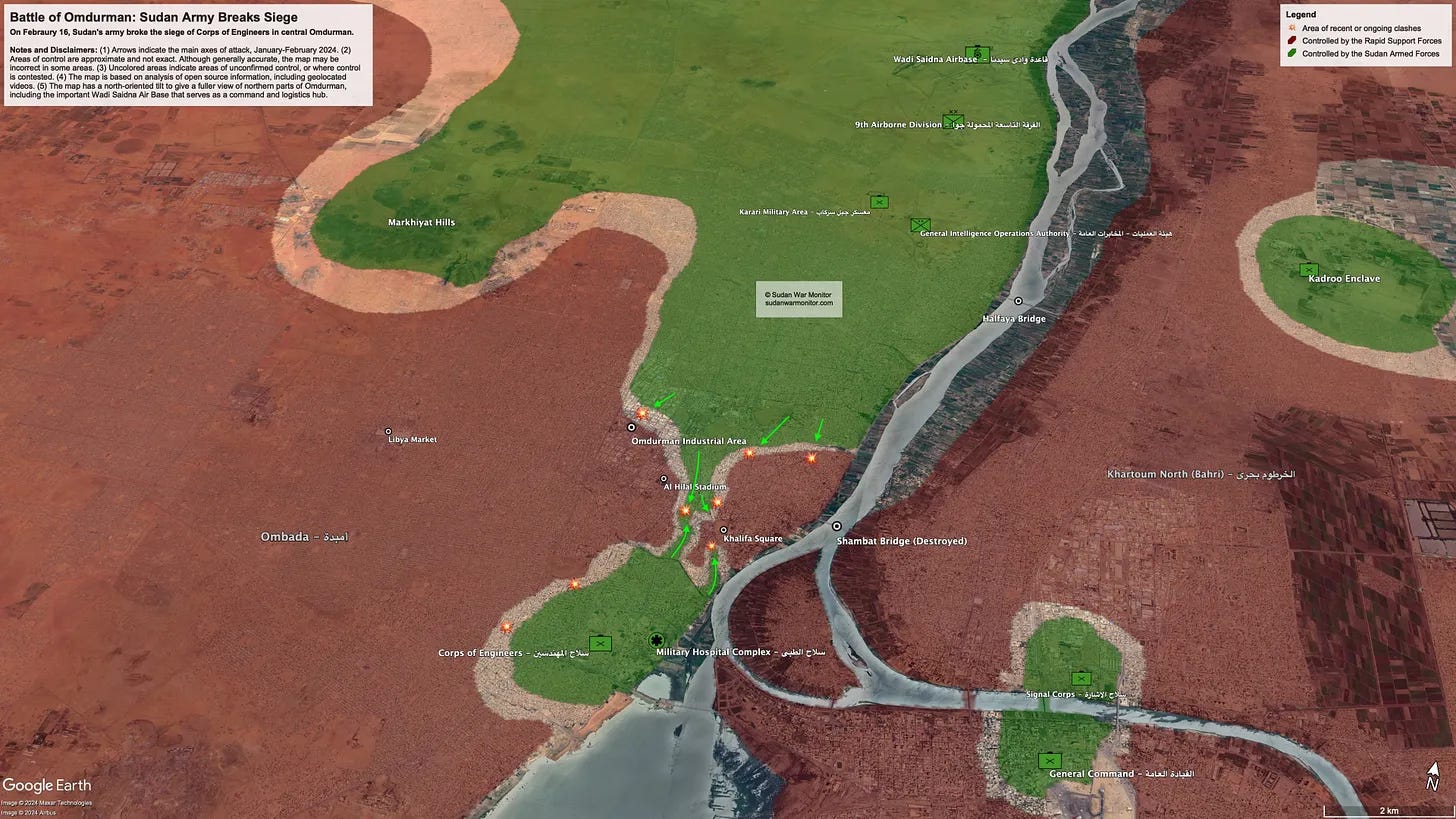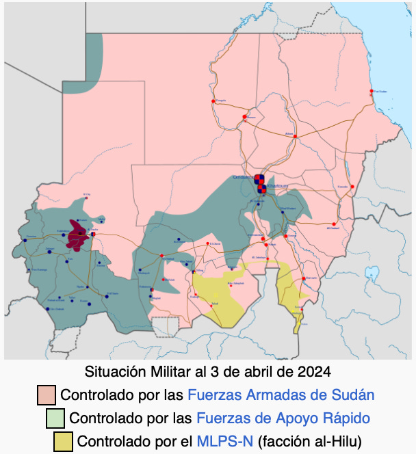 y está considerado como uno de los mejores -y muy pocos- medios para seguir ese conflicto africano.En uno de sus posts más recientes podéis encontrar este mapa actualizado de Omdurman (la ciudad más poblada del país) y Jartum (la capital), que en realidad constituyen un mismo continuo urbano separado por las aguas del Nilo. En él aparece claramente reseñado el Al-Hilal Stadium como uno de los enclaves por el que las tropas de las Fuerzas Armadas Sudanesas (SAS) han logrado entrar en el centro de la ciudad, ocupado hasta ese momento por las rebeldes Fuerzas de Apoyo Rápido (RSA).