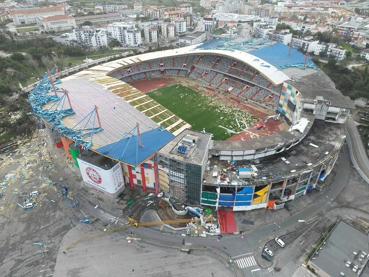 🇵🇹 La borrasca Kristin se ceba con el estadio de Leiria