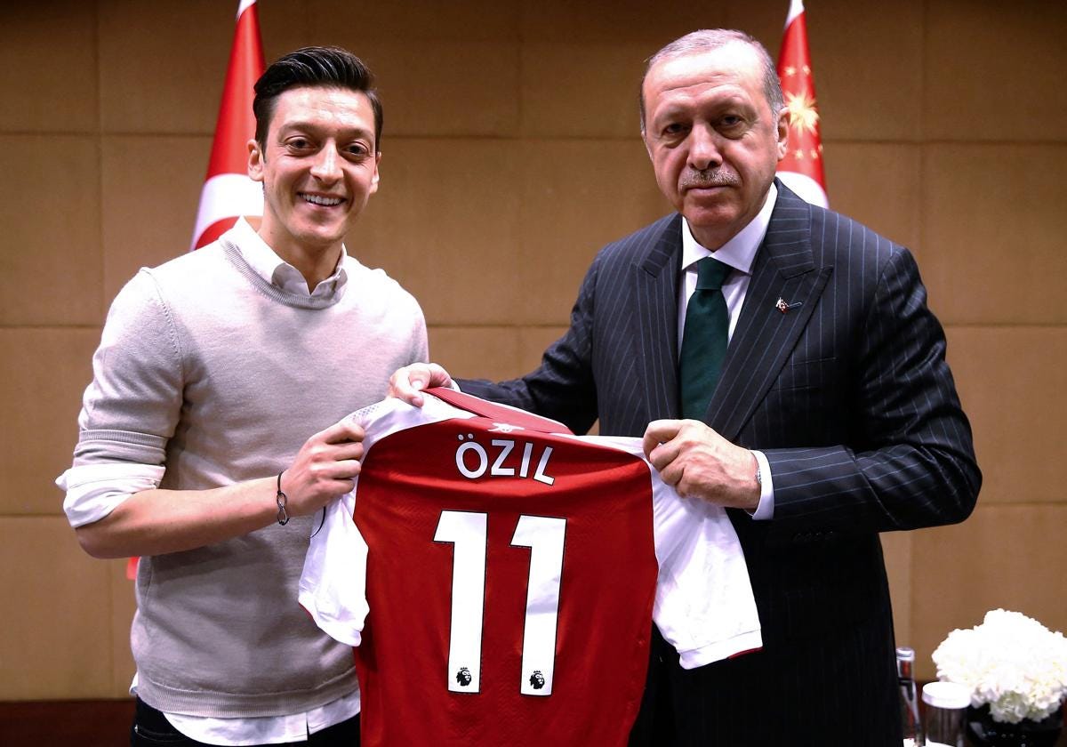 El presidente de Turquía, Recep Tayyip Erdogan, confirmó el pasado 23 de febrero un fichaje que ha pillado desprevenido al mundo del fútbol: el de Mesut Özil. El exjugador de clubes como el Arsenal o el Real Madrid se incorpora a la larga lista de exfutbolistas que dejan el balón por la política para formar parte del nuevo comité ejecutivo del Partido Justicia y Desarrollo (AKP). Özil y Erdoğan consolidan así una comunión que empezó en 2018 y que, en ese momento, levantó ampollas.