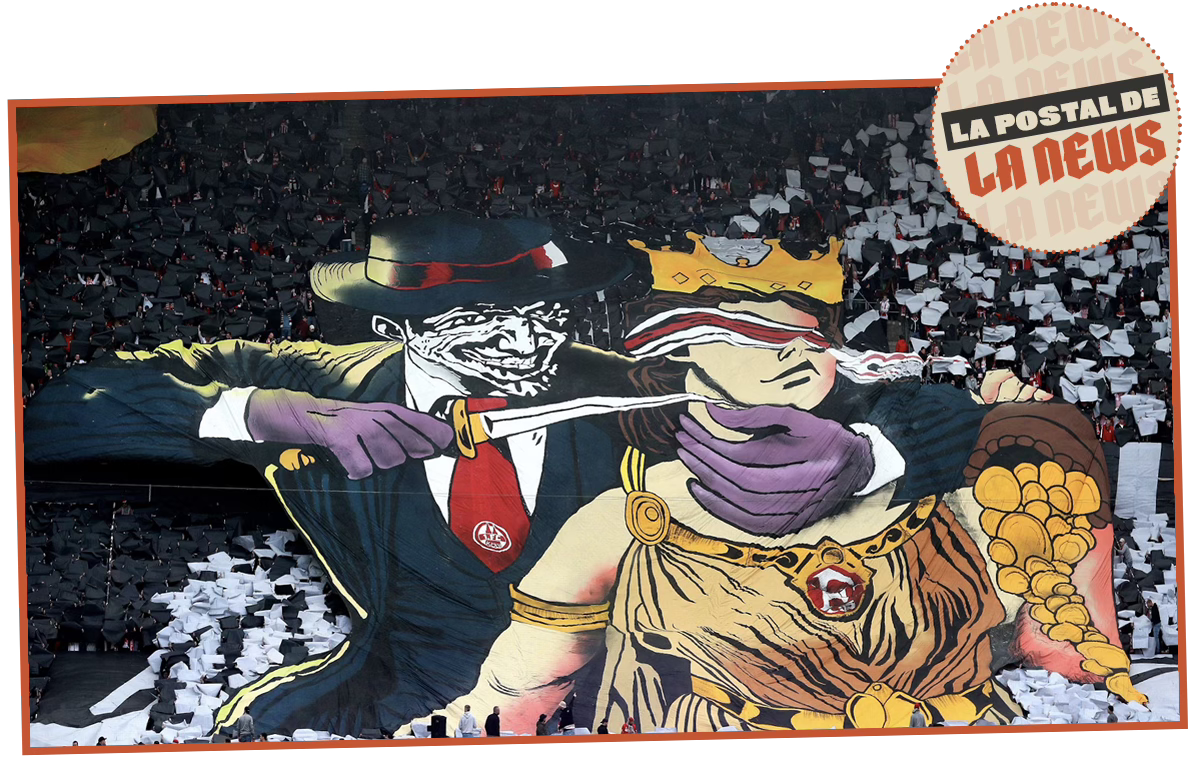 El derbi de Renania disputado la semana pasada ha seguido coleando en la actual. La imagen de un joker del Colonia a punto de acuchillar a la diosa Fortuna (de Düsseldorf) no ha terminado de gustar. Mientras el ministro del Interior de Renania-Westfalia se mostraba “disgustado” con el mosaico (y con la aprobación previa del Colonia), la comisión de control de la federación germana anunciaba una investigación sobre el caso.