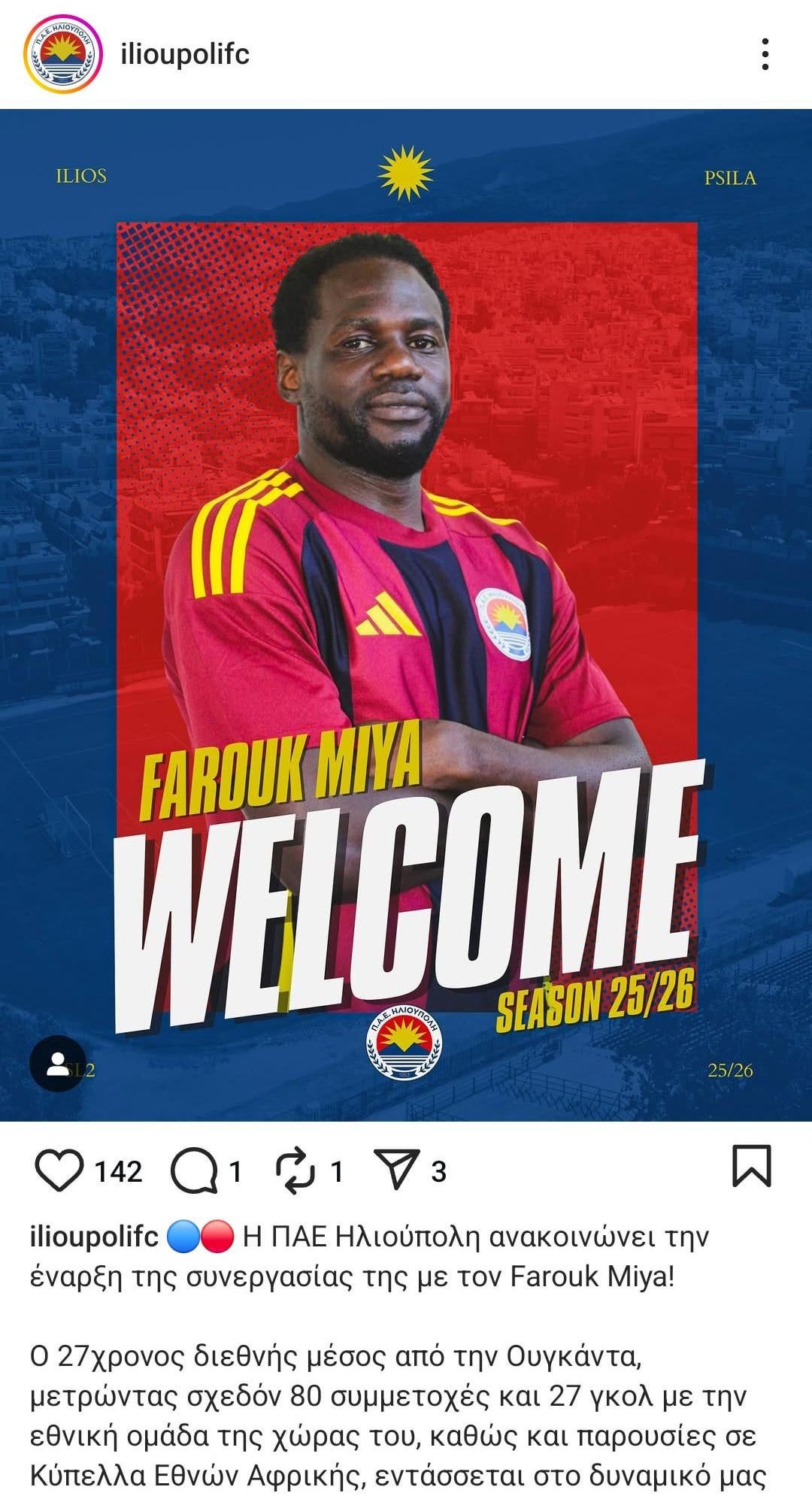 Ilioupolis, la ciudad del sol, es una localidad de unos 75.000 habitantes del área metropolitana de Atenas. Entre ellos, desde esta semana, se cuenta el centrocampista ugandés Farouk Miya. Dos nombres, el del club de fútbol de esa localidad y el de su nueva incorporación, que han provocado más de un arqueo de cejas.