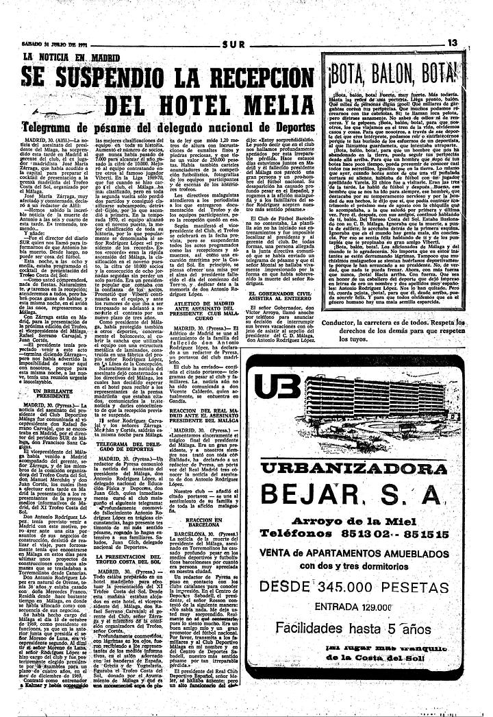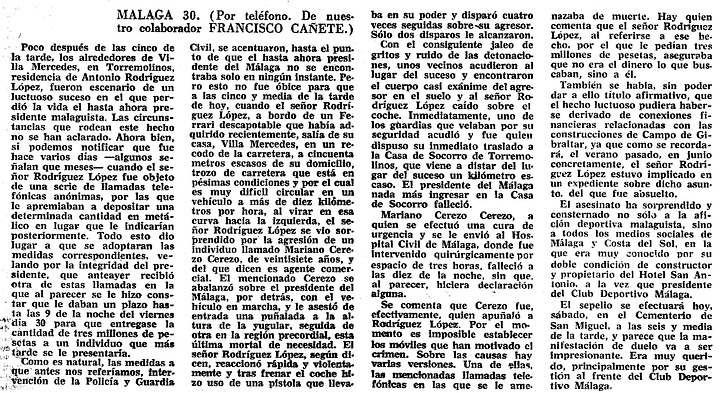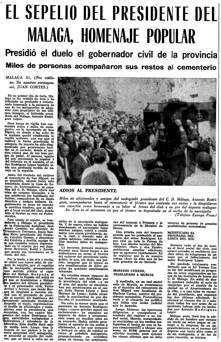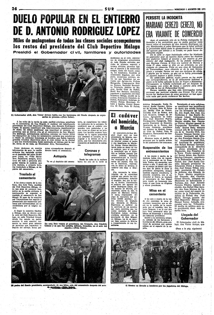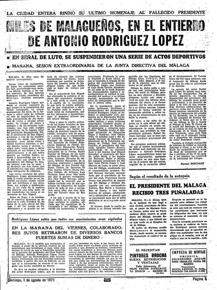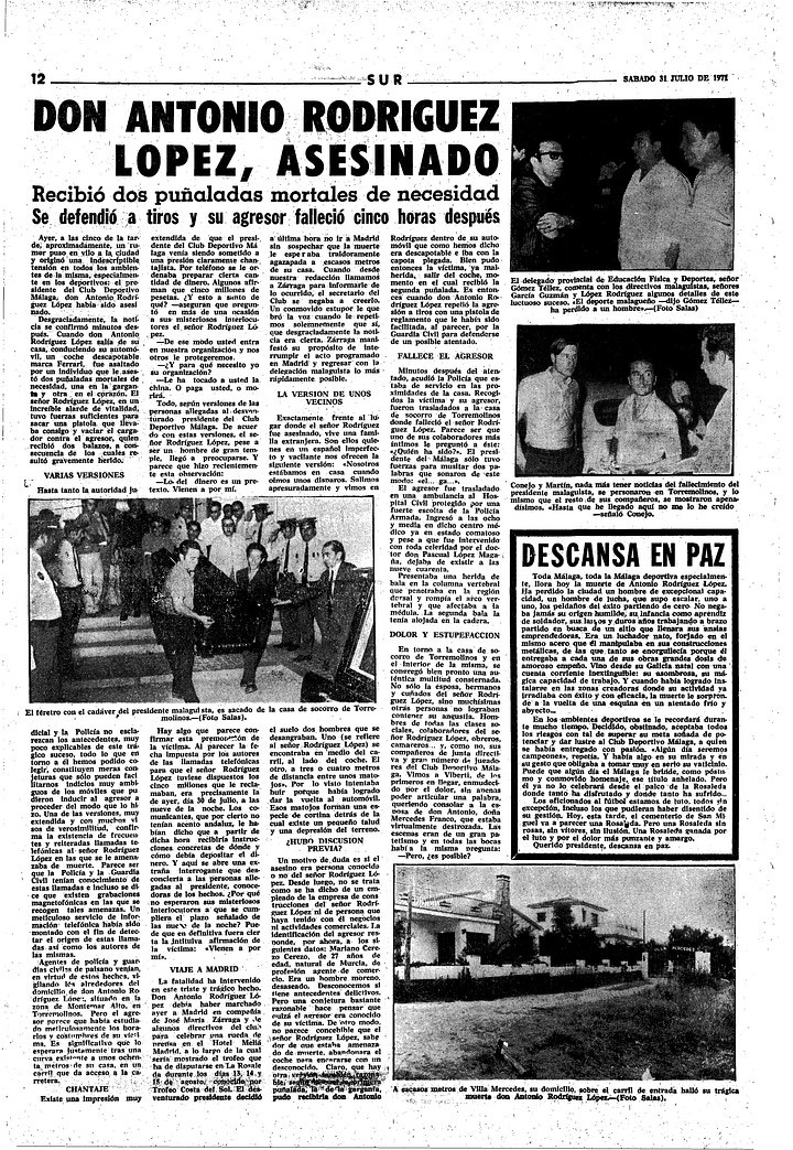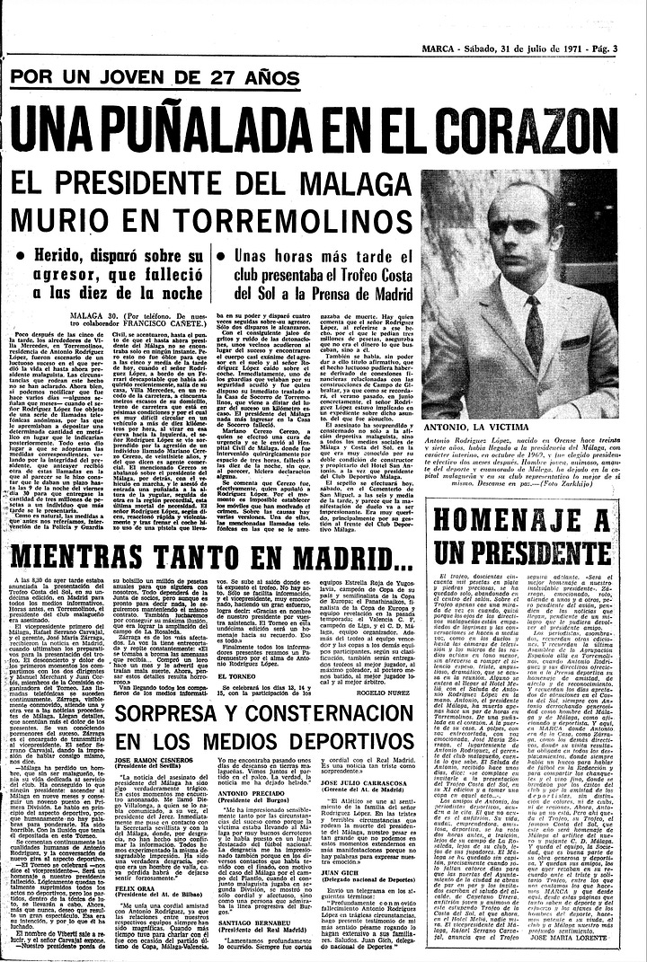 Málaga, 30 de julio de 1971. En plena campaña de renovación de abonos, la actividad en las oficinas del Club Deportivo Málaga es intensa. De repente, a las cinco de la tarde los teléfonos de la entidad comienzan a aullar. Algo le ha pasado al presidente del equipo, Antonio Rodríguez López.